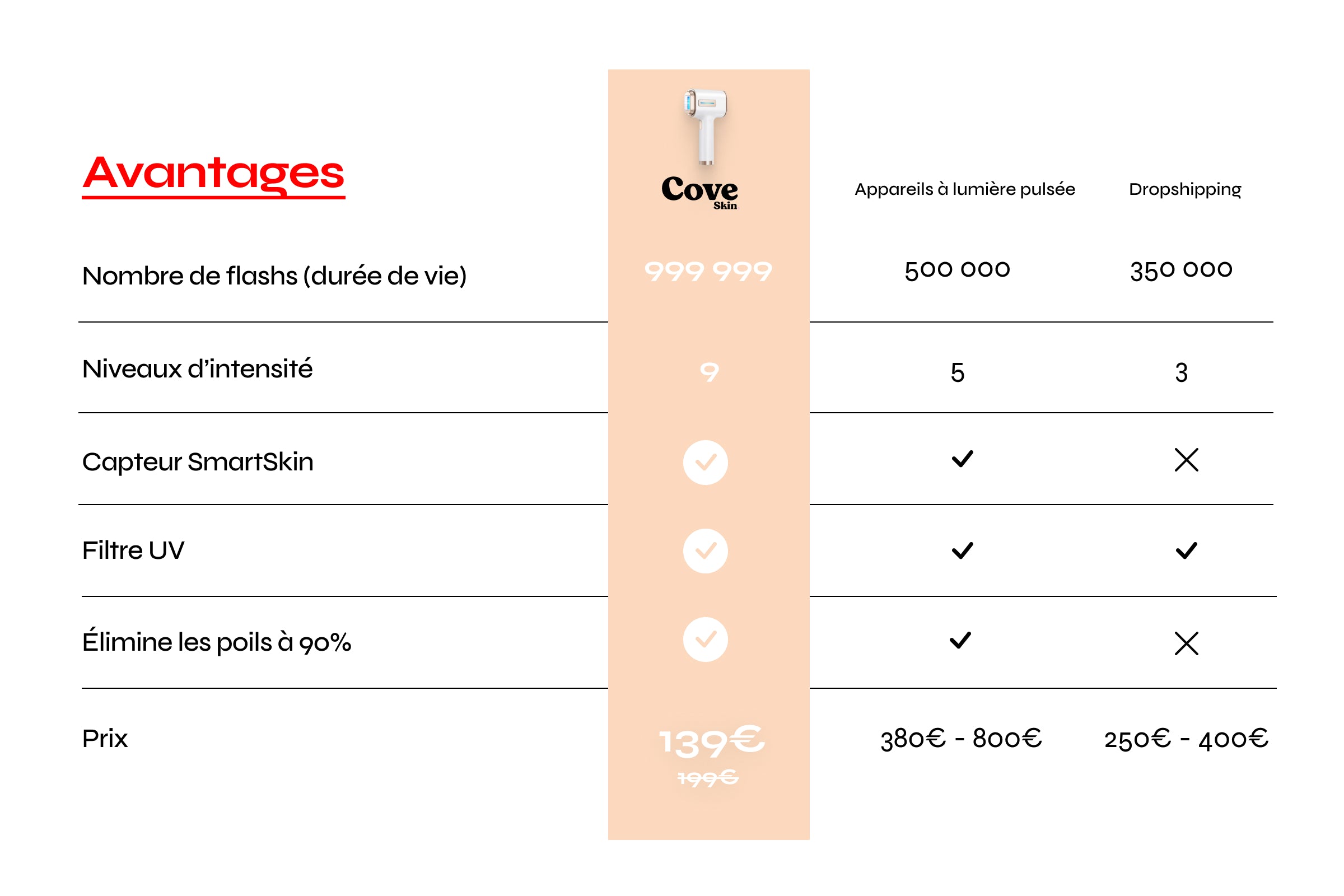 Avec CoveSkin, l'épilation devient un jeu d'enfant ! Découvrez la technologie à lumière pulsée pour des résultats professionnels à la maison.